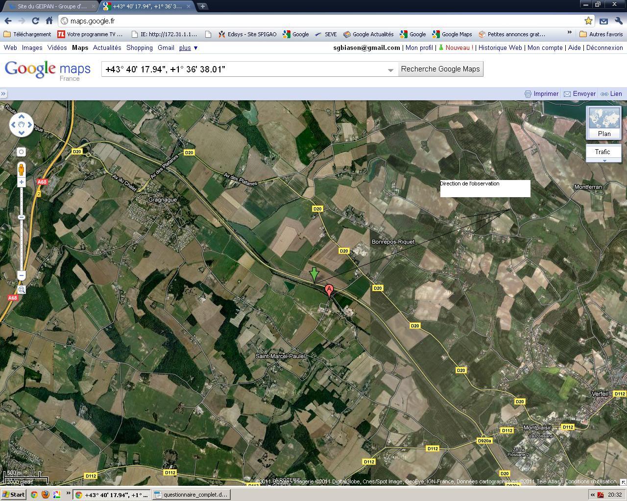 Le 23 mars 2011 vers 23h30 un automobiliste remarque dans le ciel une grosse boule d'une couleur tirant vers le rouge. Il s'arrête et prend en photo cette boule juste avant qu'elle ne disparaisse subitement.