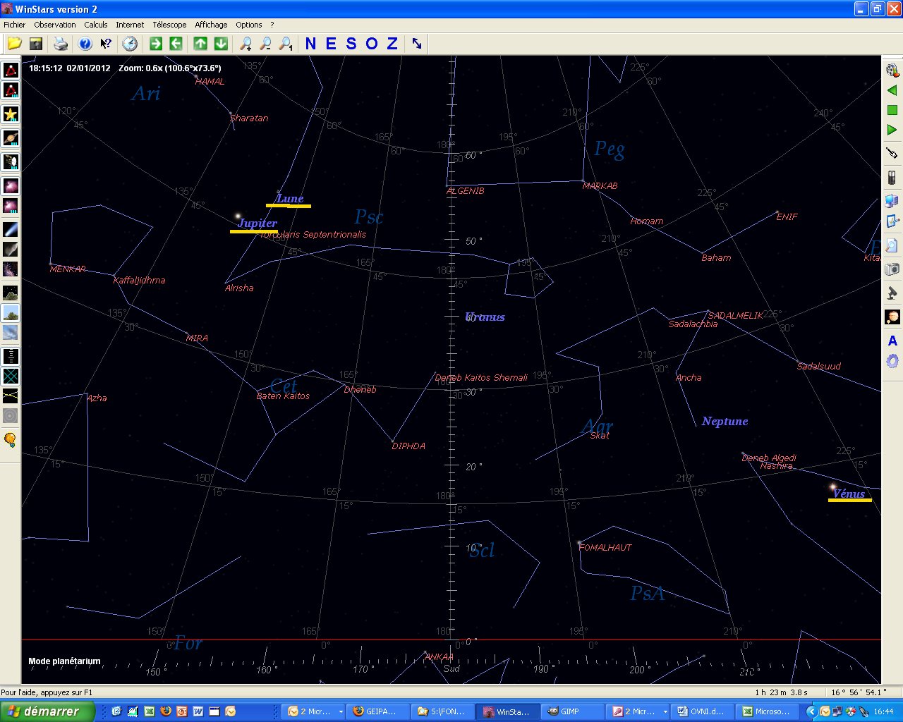 Le GEIPAN a appelé ce service à Chavenay, le correspondant a indiqué qu'il avait bien vu un point lumineux très brillant. Après une analyse rapide, cette observation pourrait n'être que la planète Vénus, et ne pas être l'objet signalé par le témoin. On note aussi ce soir là la planète Jupiter près de la Lune (voir carte astro ci jointe). Comme Vénus est assez basse sur l'horizon, la scintillation en fait beaucoup varier les couleurs.