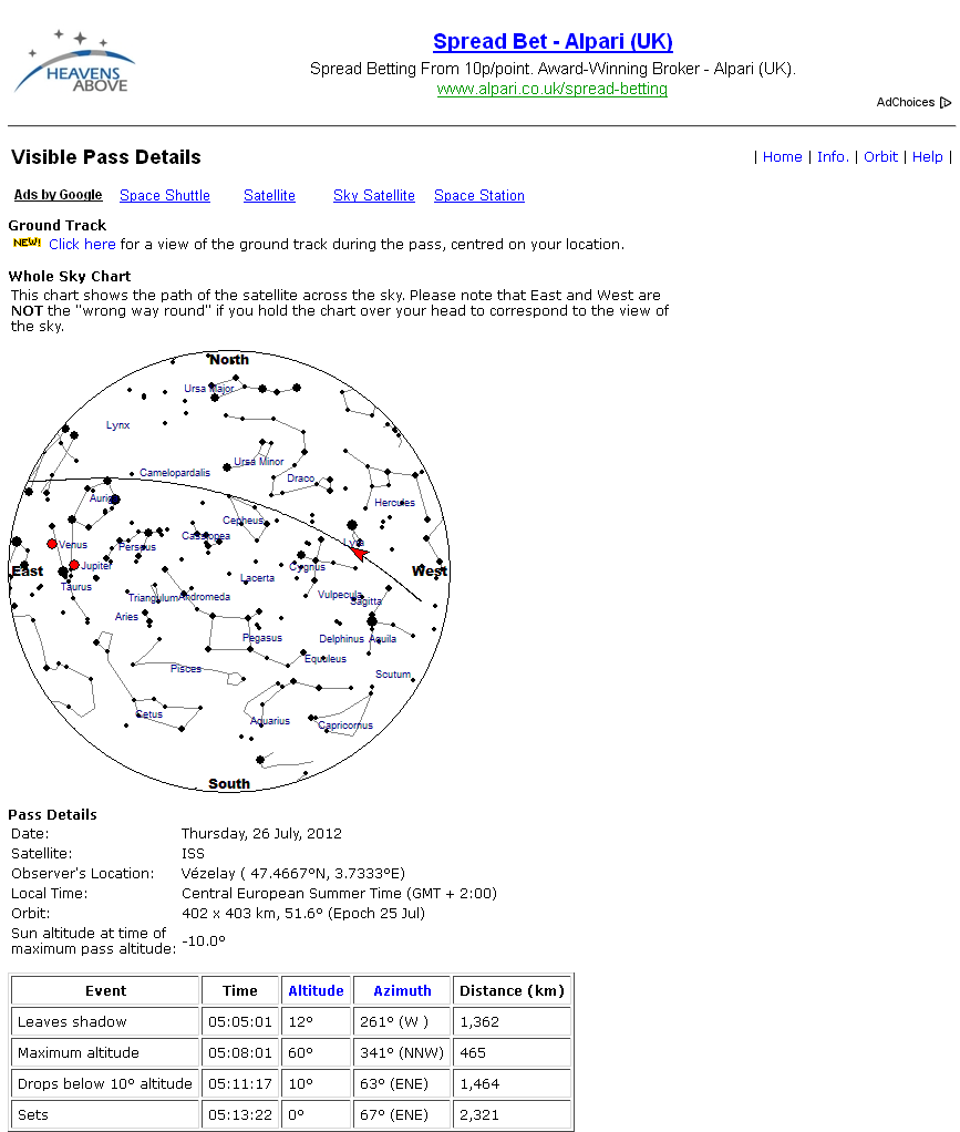Le témoin a observé le passage de la station spatiale internationale (ISS)( voir la carte du ciel extraite du site Heavens-above avec la trace de l'ISS. Attention regarder la carte "tête en l'air" avec l'Est à gauche).