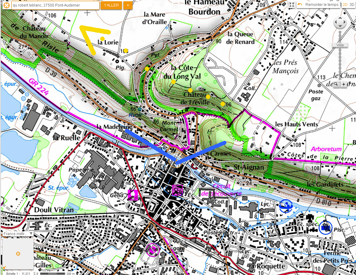 Le vent de Sud (relevé Meteociel à Rouen) n'est pas tout à fait cohérent avec le déplacement vers le Nord Ouest constaté par le témoin, mais le relief particulier (la rivière La Risle coule le long d'une côte abrupte, voir carte) peut provoquer des vents locaux à basse altitude.