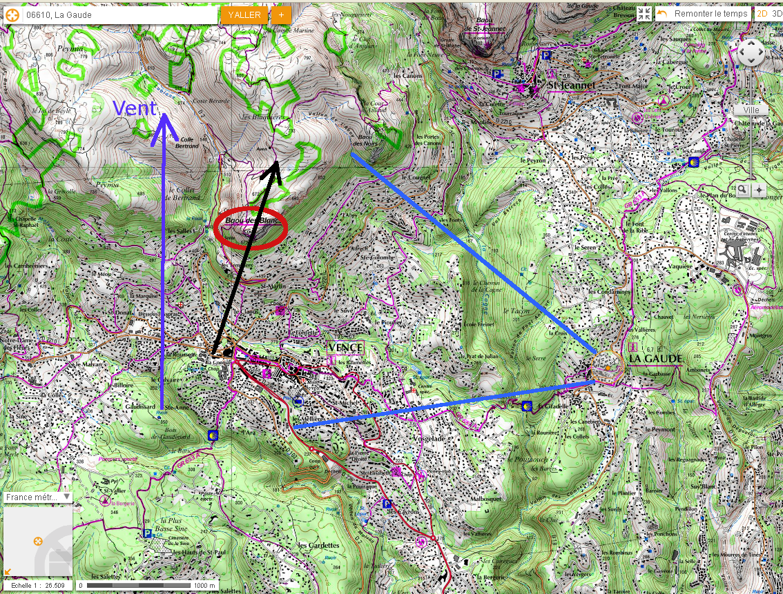 D'après les déclarations du témoin qui observe en direction du "Baou" (le sommet Baou des blancs) situé à l'ouest de La Gaude, il voit l'objet voler de sa gauche vers sa droite, donc du Sud vers le Nord ; il le voit s'élever. L'observation dure environ 4 minutes.