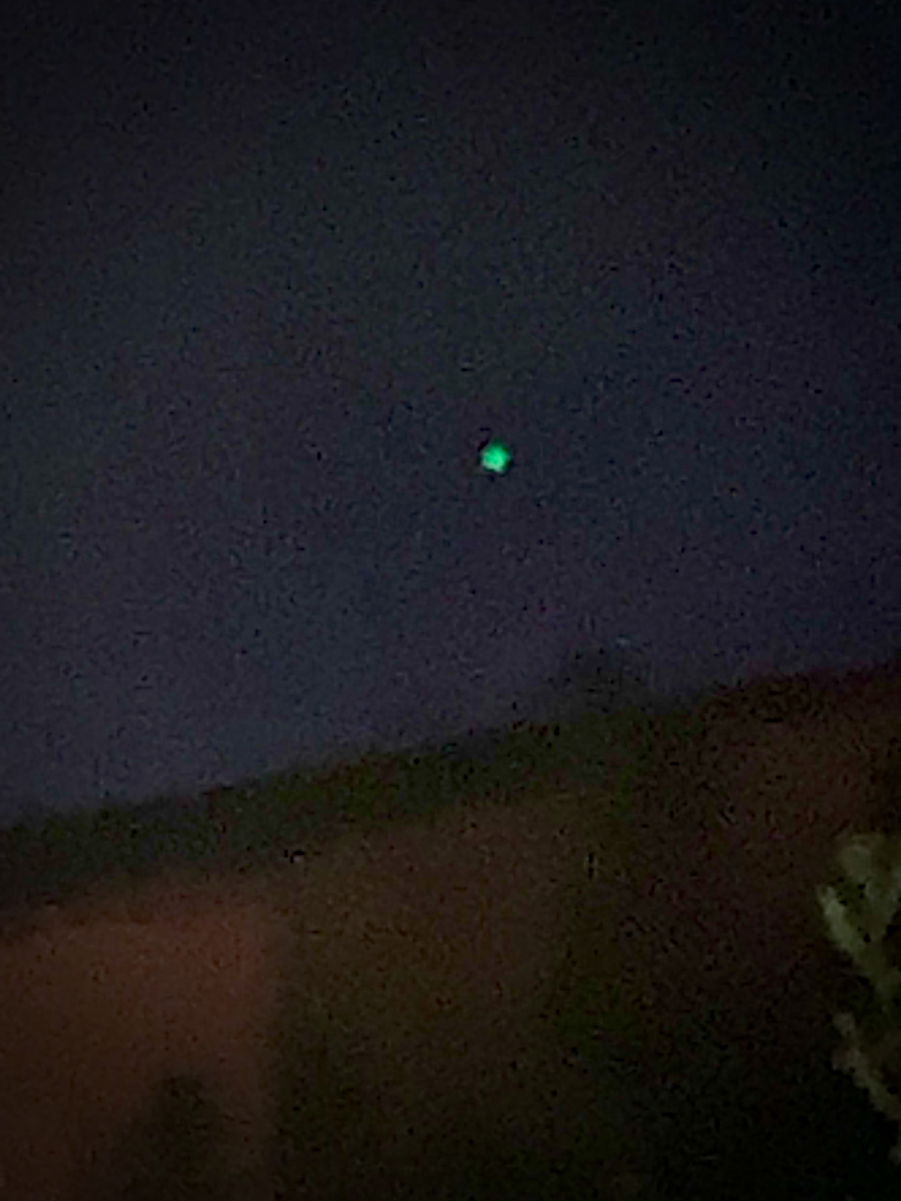 Le 02 septembre 2022 à 06h35, un fort orage en approche, un habitant de Frontignan sort sur sa terrasse. Le ciel est très couvert et bas de plafond, le jour n’est pas encore levé ; il aperçoit alors une lumière clignotante verte très vive dans le ciel, visible au-dessus de la toiture d’une maison voisine, il est intrigué par son immobilité. La position sous de gros nuages noirs l'incite à penser que ce point lumineux clignotant n’est pas très haut. Le clignotement est rapide : 1 par seconde environ. Le témoin prend une photo avec son téléphone portable. Limité par le zoom de son téléphone, le témoin décide d'aller chercher ses jumelles et au retour il constate que la lumière s’est déplacée vers lui. Il quitte ensuite de nouveau sa terrasse pour aller chercher un appareil photo avec zoom mais à son retour le PAN a disparu.