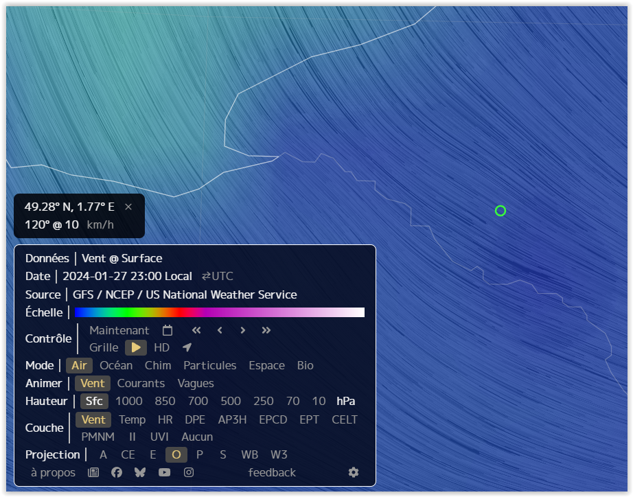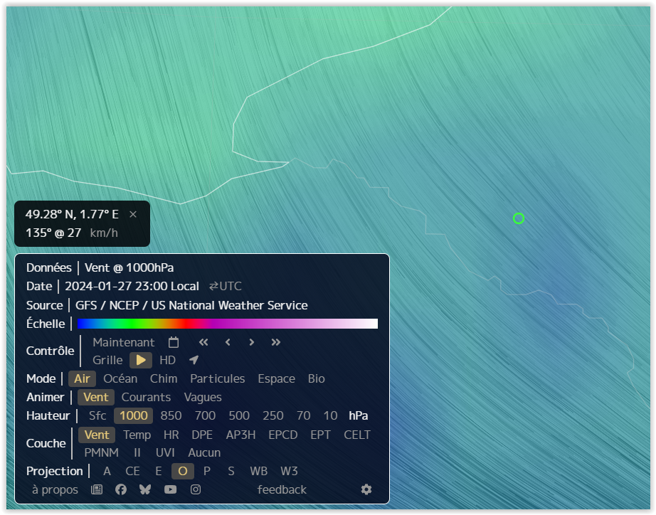 - Le déplacement lent et simultané de l'ensemble des PANs dans une même direction, clairement observable sur les enregistrements vidéo, correspond au comportement typique de lanternes célestes entraînées par le vent. Les données météorologiques disponibles (voir annexes 1 et 2) indiquent un vent de surface faible soufflant du sud-est (azimut compris entre 120° et 135°), avec une vitesse estimée entre 10 et 27 km/h. Ces conditions sont en cohérence avec la trajectoire décrite par le témoin, dont l'observation s'étend d'un azimut initial sud-est à un azimut final nord-nord-est. Un vent léger constitue par ailleurs une configuration favorable à un lâcher de lanternes, limitant les risques liés à la dérive incontrôlée ou aux départs de feu.