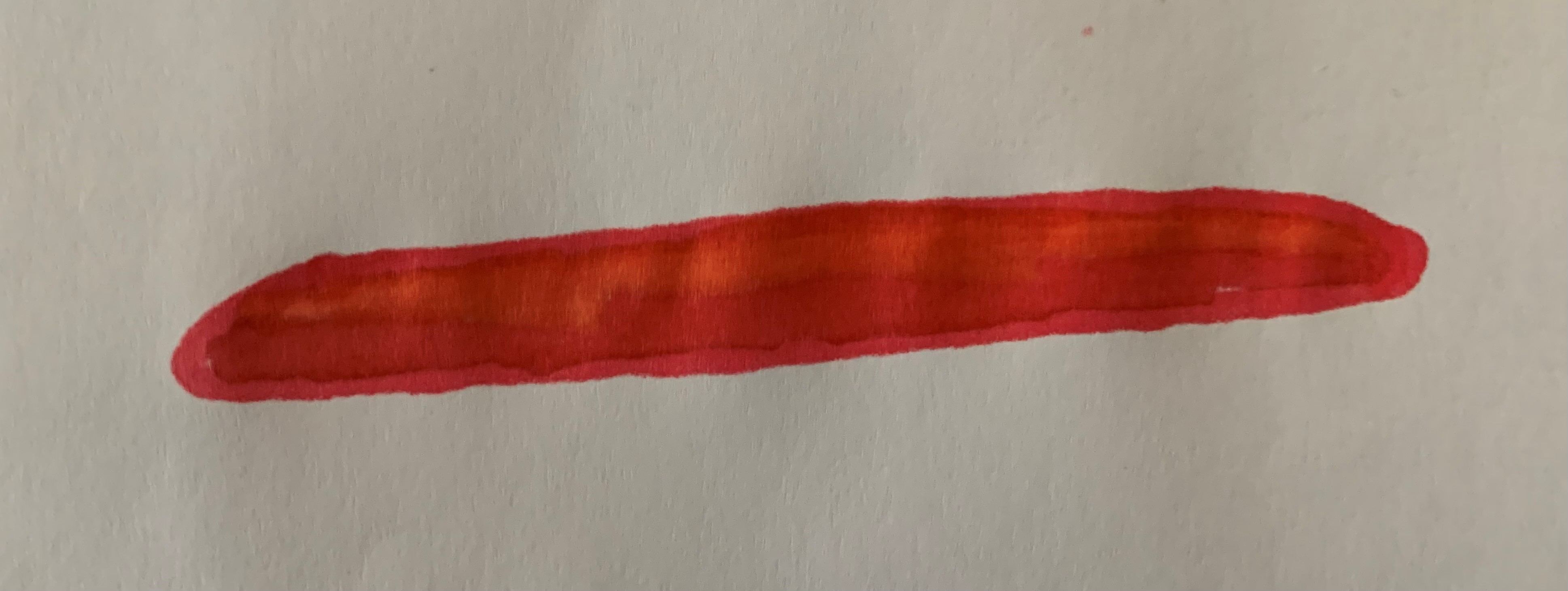Observation, depuis un véhicule en déplacement sur une autoroute, d'une forme longiligne rouge-orangée dans le ciel cachée rapidement par un élément du paysage : observation probable d'un nuage isolé coloré par le Soleil levant.